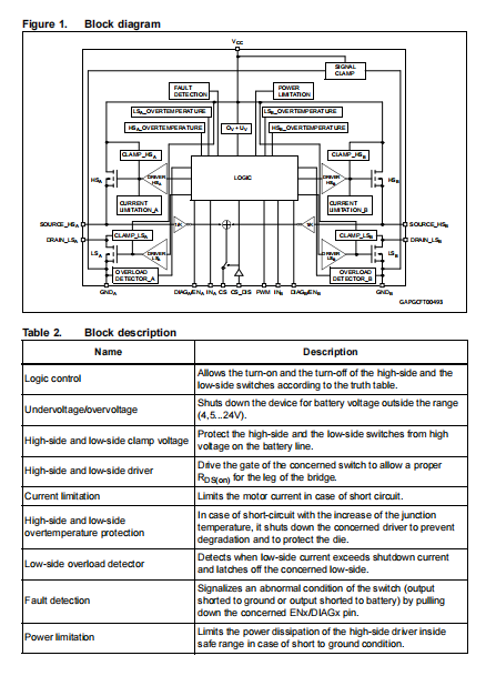 此外,它的完全对称的机械设计允许优越的可制造性在板水平。输入信号INA和INB可以直接与微控制器接口,选择电机的方向和制动状态。当DIAGA/ENA或DIAGB/ENB被连接到外部上拉电阻器时,可以实现电桥的一条腿。每个DIAGA/ENA也提供一个数字诊断反馈信号。正常运行情况在真值表中也有说明。