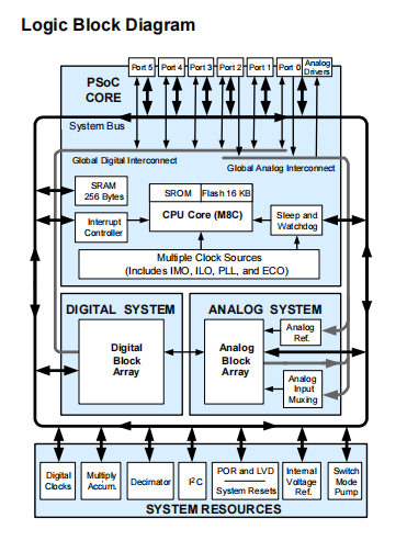 ❐ Eight digital PSoC blocks provide: