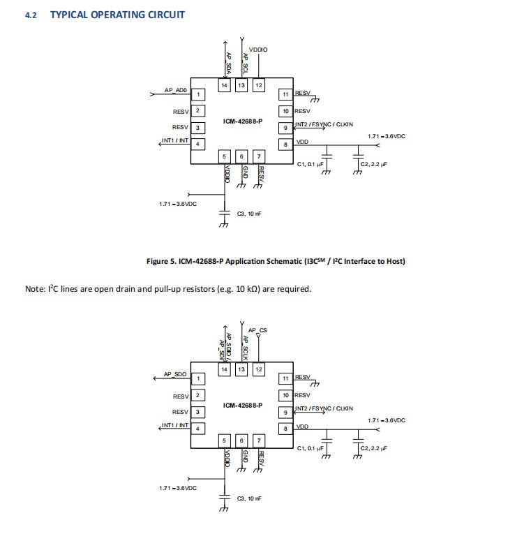 • Host interface: 12.5 MHz I3CSM, 1 MHz I2C,