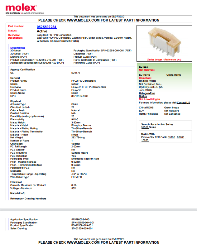 525592234 MOLEX FFC/FPC connector