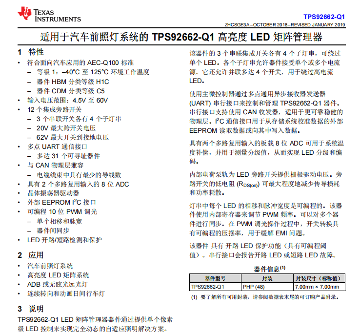 Tps92662-q1 LED matrix manager device realizes a fully dynamic adaptive lighting solution by providing a single pixel level led control.