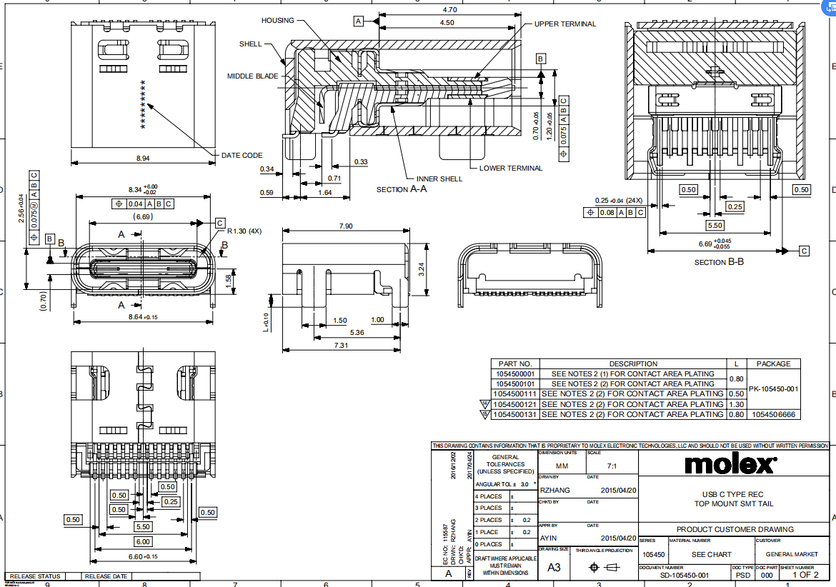 1054500101 SMD USB connector MOLEX agent lowest spot price
