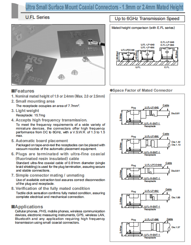 miniature devices, the connectors offer high frequency