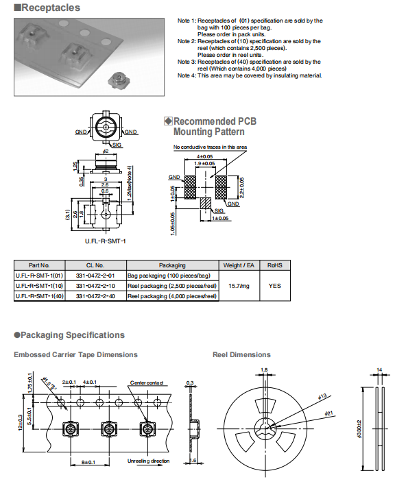 Packaged on tape-and-reel the receptacles can be placed with