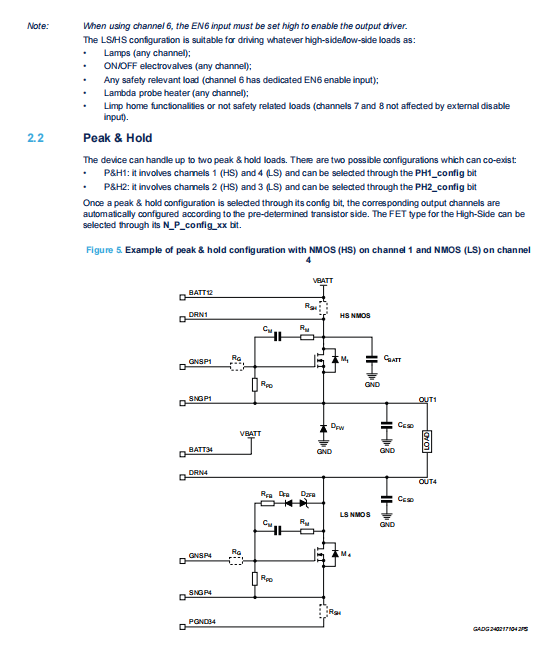 used in P&H or H-Bridge are available for HS/LS usage. All the configurations involving channel 6 require the