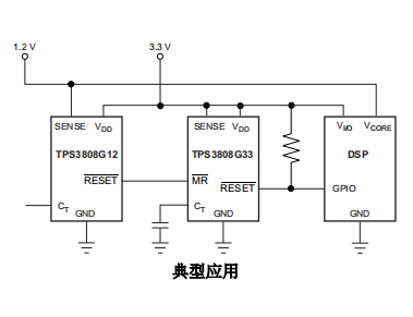 Tps3808 series microprocessor monitoring circuit can monitor the system voltage from 0.4V to 5V, and set the open drain reset signal to be valid when the sense voltage drops below the preset threshold or the manual reset (MR) pin drops to the logic low level. When the sense voltage and the return value of manual reset (MR) exceed the corresponding threshold, the reset output will remain low within the user adjustable delay time.