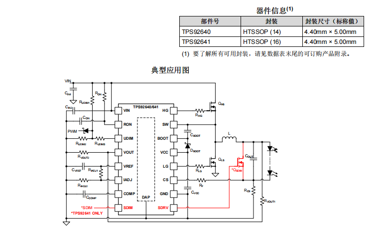两种器件还具备为低功耗微控制器提供精密基准电流的能力。 保护特性包括:逐周期电流保护、过压保护和热关断。 TPS92641 器件包含一个用于高分辨率 PWM 调光的分流 FET 调光输入和 MOSFET 驱动器。