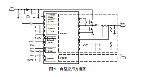 - 低功耗模式 IQ:30µA(一个降压稳压器打开),35µA(两个降压稳压器打开)