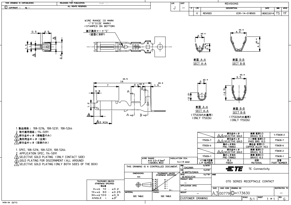 数据列表:Certi-Crimp II Tool & Econoseal Contacts Drawing 173630