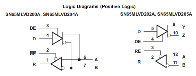 SN65MLVD202A、SN65MLVD204A和SN65MLVD205A设备