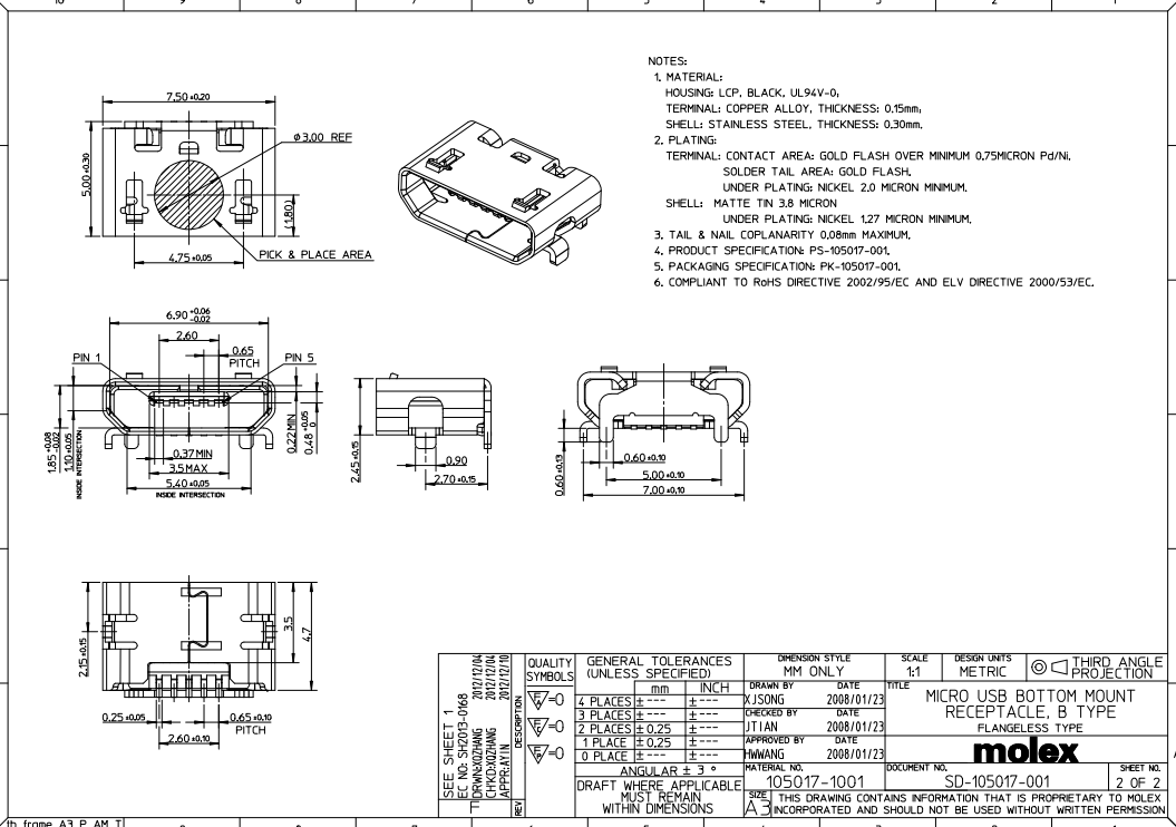 1050170001 SMD USB连接器 MOLEX 代理现货 价格最低