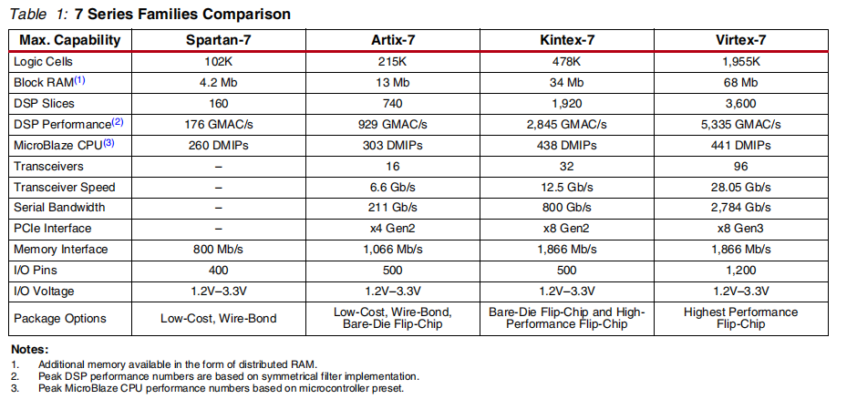 •Spartan®-7系列:针对低成本、低功耗和高输入/输出性能。