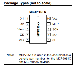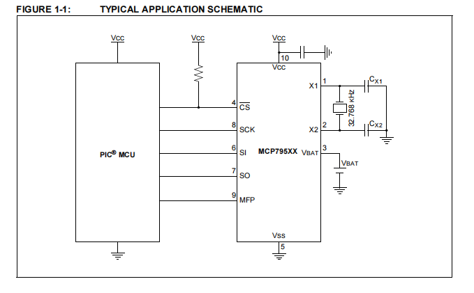 MCP795XX设计使用使用32.768 kHz音叉晶体与外部晶体负载电容器。片上数字微调可用于调整由晶体容差和温度引起的频率变化。