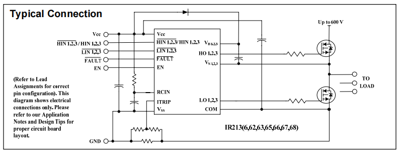 异相(IR213(6,63,65,66,67,68))或同相(IR21362)带输入