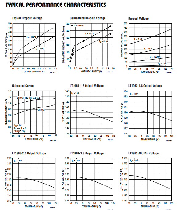 LT ® The 1963 series is a low dropout regulator optimized for fast transient response. This device can provide an output voltage of 340 mV for an output current of 1.5A. The working static current is 1 mA, which drops to<1 µ A during shutdown. The static current is well controlled; It will not rise like many other regulatory agencies. In addition to fast transient response, LT1963 regulators have very low output noise, making them ideal for sensitive RF supply applications.