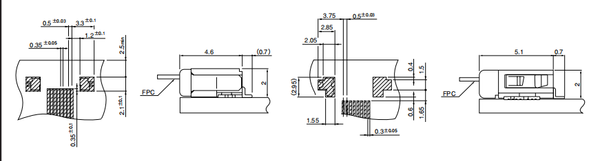 • Applicable FFC and FPC: Conductor pitch/ 0.5 mm