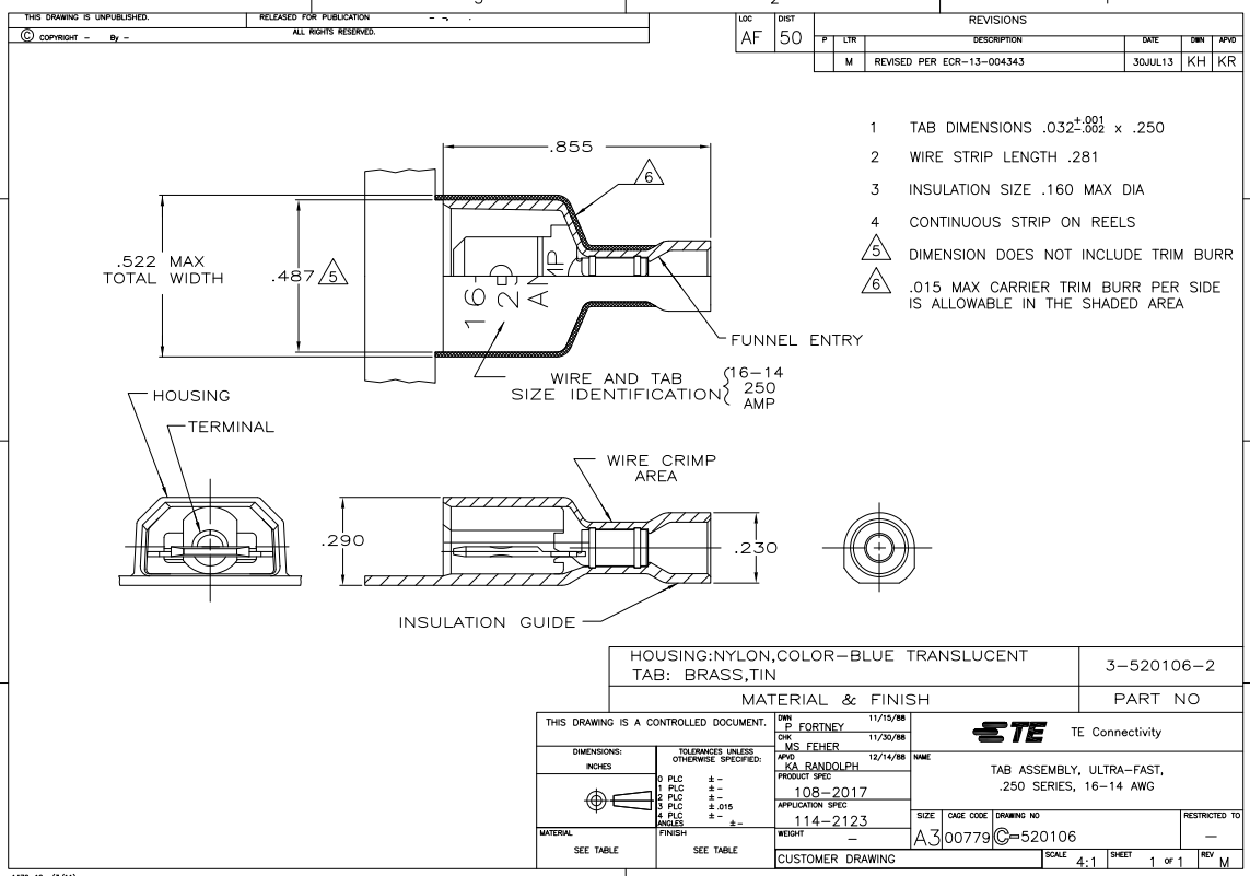 Terminal / connector size: 6.35 mm x 0.81 mm