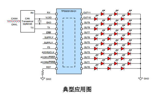 Tps929120-q1 is a 12 channel 40V high side LED driver