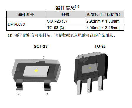 Drv5033 device is a chopper stabilized Hall effect sensor, which can provide magnetic field sensing function with excellent sensitivity stability and integrated protection characteristics in the whole temperature range.