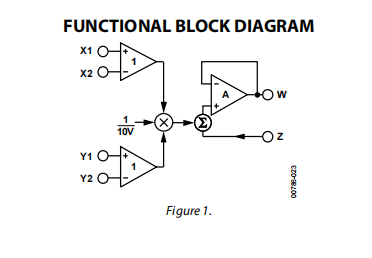 Voltage-controlled amplifiers/attenuators/filters FEATURES 4-quadrant multiplication Low cost, 8-lead SOIC and PDIP packages Complete—no external components required Laser-trimmed accuracy and stability Total error within 2% of full scale Differential high impedance X and Y inputs High impedance unity-gain summing input Laser-trimmed 10 V scaling reference APPLICATIONS Multiplication, division, squaring Modulation/demodulation, phase detection